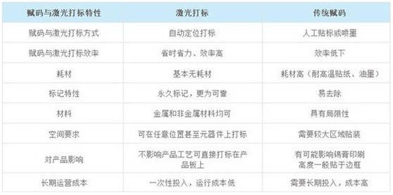 以下為電路板激光打標(biāo)和傳統(tǒng)賦碼方式的優(yōu)劣勢對比