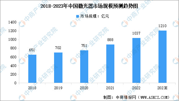 激光器市場規(guī)模增長,并在醫(yī)學(xué)領(lǐng)域扮演著重要角色隨著現(xiàn)代制造業(yè)朝著自動(dòng)化、智能化的方向發(fā)展,5G商業(yè)化應(yīng)用程度不斷加深,半導(dǎo)體及光學(xué)、顯示和消費(fèi)電子等行業(yè)都處于持續(xù)增長狀態(tài),激光設(shè)備的需求持續(xù)增加,進(jìn)而帶動(dòng)著激光器行業(yè)快速發(fā)展。中商產(chǎn)業(yè)研究院發(fā)布的《2023-2029年中國激光器市場前景及投資機(jī)會(huì)研究報(bào)告》顯示,2022年中國激光器市場規(guī)模達(dá)到1037億元,同比增長16.78%。中商產(chǎn)業(yè)研究院分析師預(yù)測,2023年中國激光器市場規(guī)模增至1210億元。