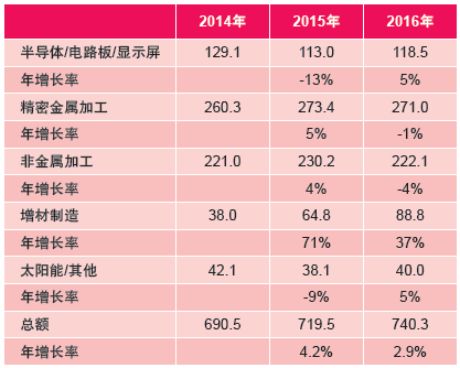表2:微加工領(lǐng)域的銷售收入(貨幣單位:百萬美元)