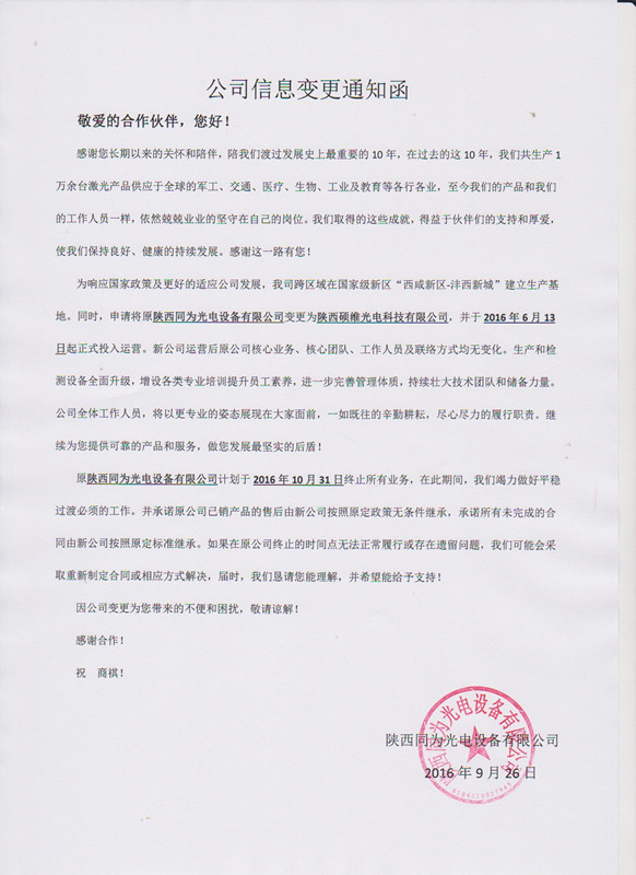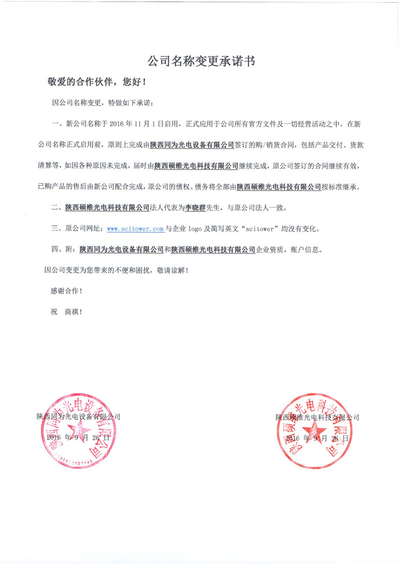 公司名稱變更通知函與承諾書