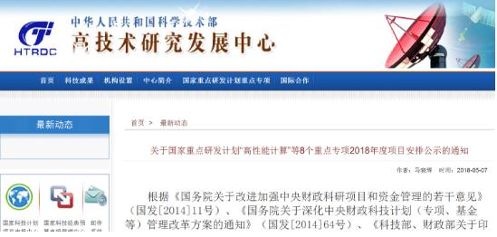 2018年5月7日,高技術(shù)研究發(fā)展中心公示了8個(gè)國家重點(diǎn)研發(fā)計(jì)劃重點(diǎn)專項(xiàng)擬立項(xiàng)的2018年度項(xiàng)目公示清單。分別是“高性能計(jì)算”重點(diǎn)專項(xiàng)、“云計(jì)算和大數(shù)據(jù)”重點(diǎn)專項(xiàng)、“地球觀測(cè)與導(dǎo)航”重點(diǎn)專項(xiàng)、“戰(zhàn)略性先進(jìn)電子材料”重點(diǎn)專項(xiàng)、“增材制造與激光制造”重點(diǎn)專項(xiàng)、“煤炭清潔高效利用和新型節(jié)能技術(shù)”重點(diǎn)專項(xiàng)、“新能源汽車”重點(diǎn)專項(xiàng)和“先進(jìn)軌道交通”重點(diǎn)專項(xiàng)。
