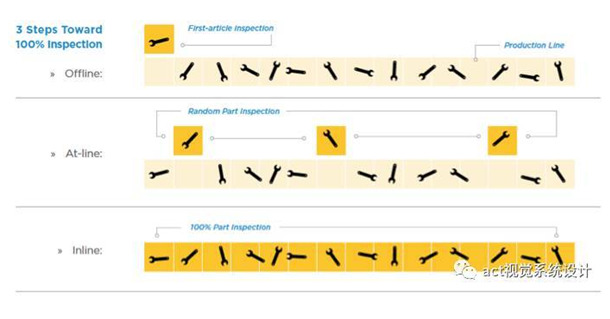 一、Offline:首件檢測 當(dāng)機器視覺系統(tǒng)運行緩慢時,制造商不得不使用離線檢測方法。離線檢測用于測證第一件產(chǎn)品的制造是否正確,并假設(shè)生產(chǎn)設(shè)備在長期生產(chǎn)期間,都處于可接受公差范圍內(nèi)。 這種方法將第一件產(chǎn)品作為整批產(chǎn)品的代表,因此會存在一些潛在的質(zhì)量問題,比如由生產(chǎn)線上的動態(tài)過程磨損引起的潛在質(zhì)量問題。