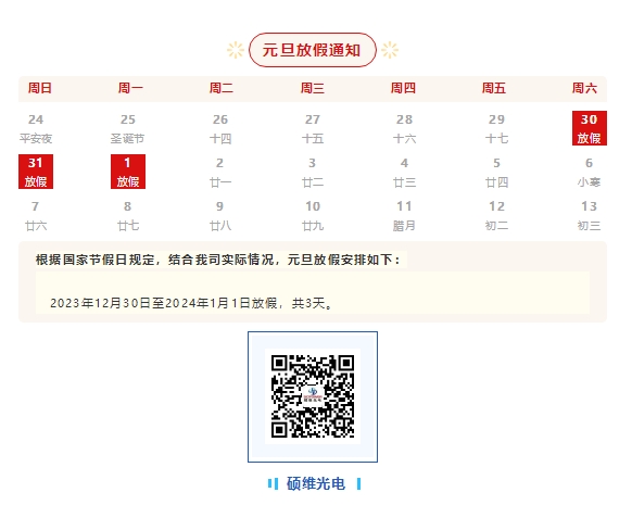 元旦放假通知